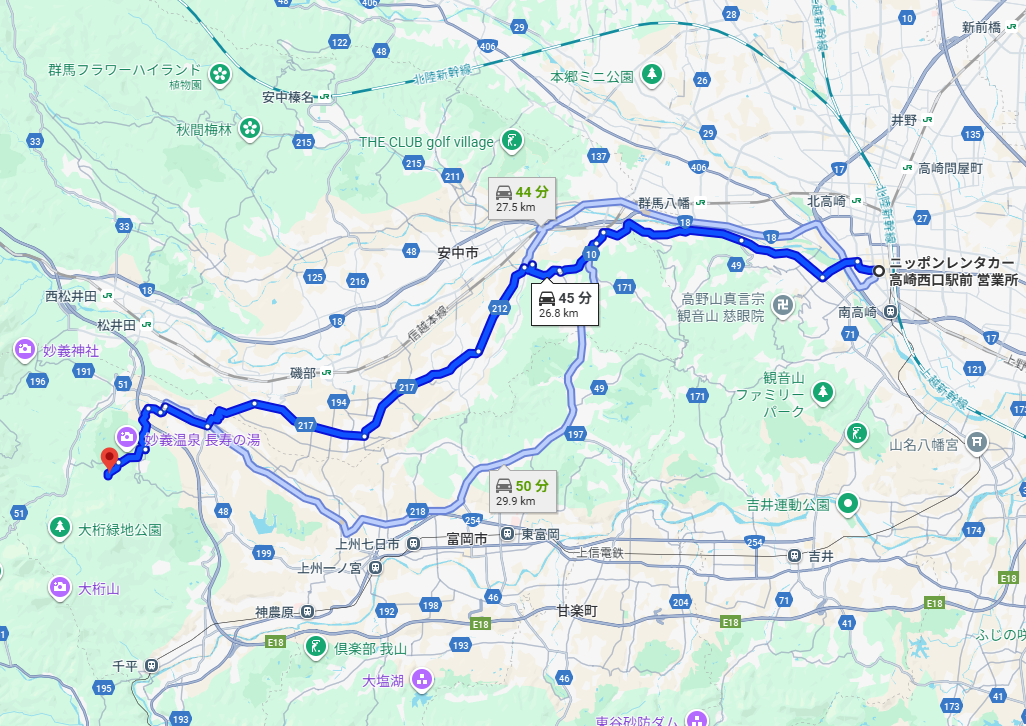 高崎駅から車で40~50分で着きますのでアクセスも良いです。