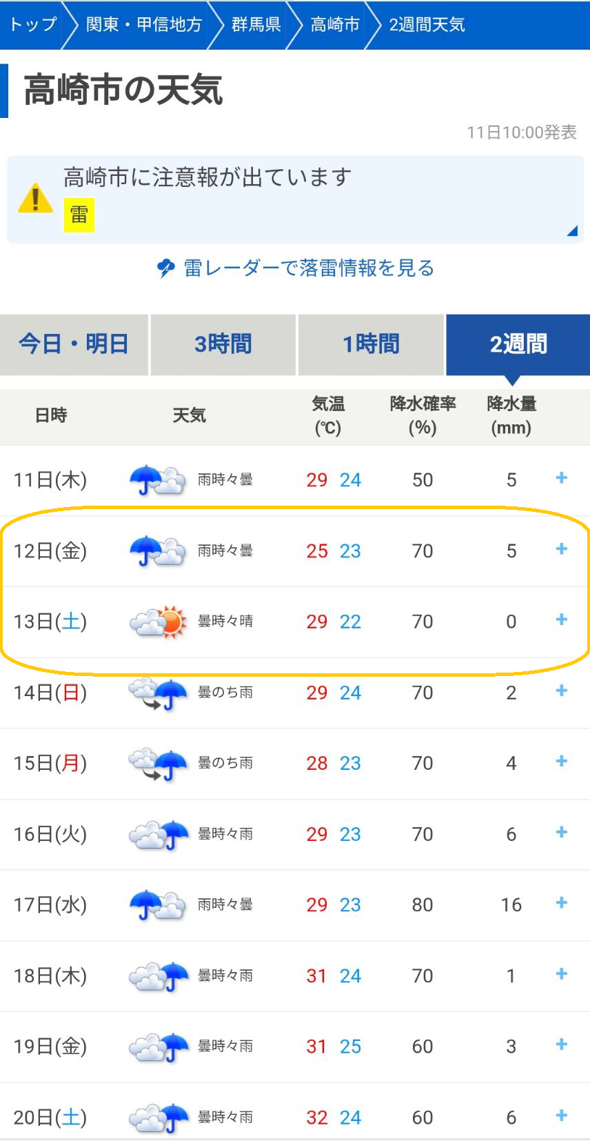 でも土曜が晴れそうな点だけが唯一の救いです。