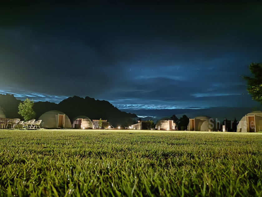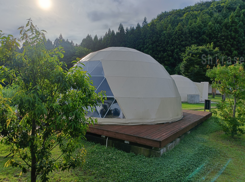 再度グランピング施設に向かいます。レセプションエリア兼受付はここのドームです。