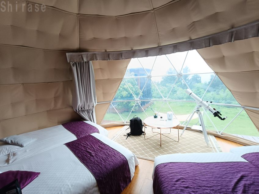 ドーム内はこんな感じ。エアコンと冷蔵庫も設置されていて、ドリップコーヒーも室内で頂けます。