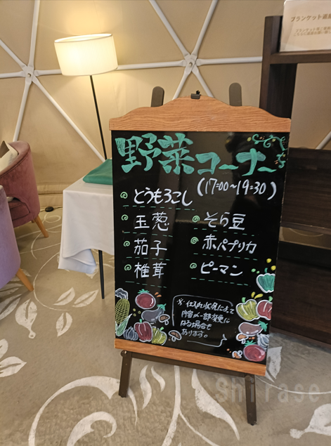 レセプションエリアには追加の野菜と、飲み放題のお酒!テラスに持ってきて一緒に調理しながら頂けます。